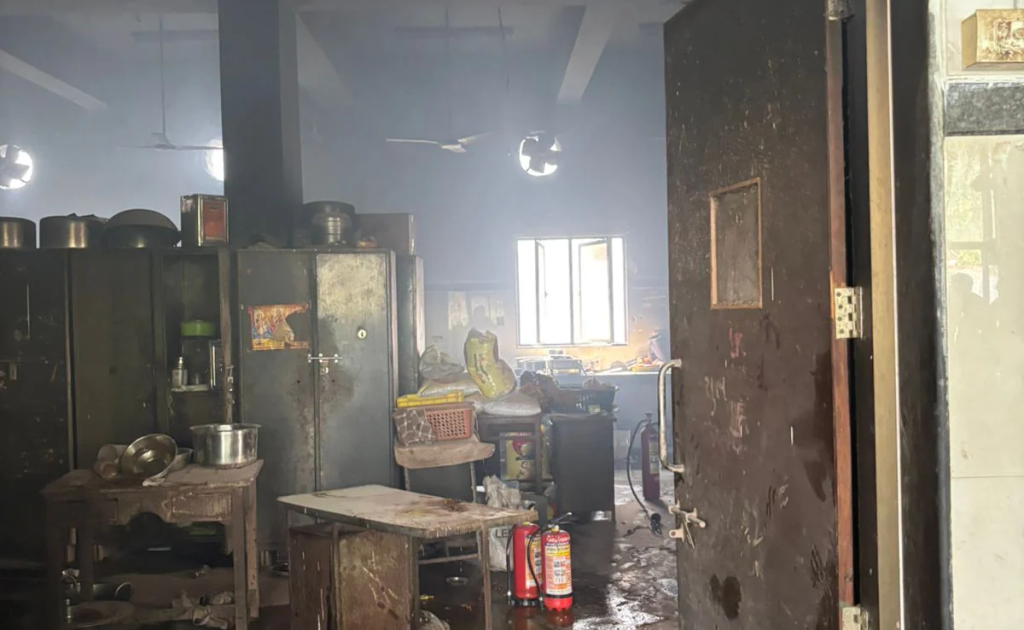 Images from the crash site reveal harrowing scenes — a large portion of the Boeing 787-8 Dreamliner embedded into the hostel building, with smoke and debris scattered across the premises. Some photos show canteen tables with food plates left untouched, indicating the abruptness of the incident.