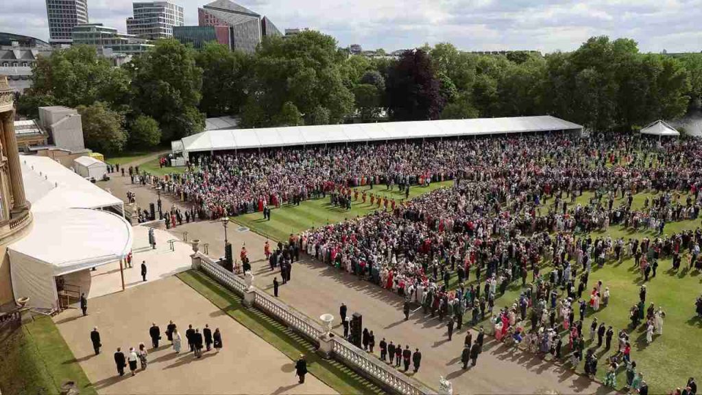 The event began with gates opening at 3 p.m., followed by the arrival of the royal family an hour later, set to the tune of the national anthem performed by a military band. Guests were treated to a quintessentially British experience — sipping tea, enjoying slices of cake, and strolling through the Palace’s famed gardens.