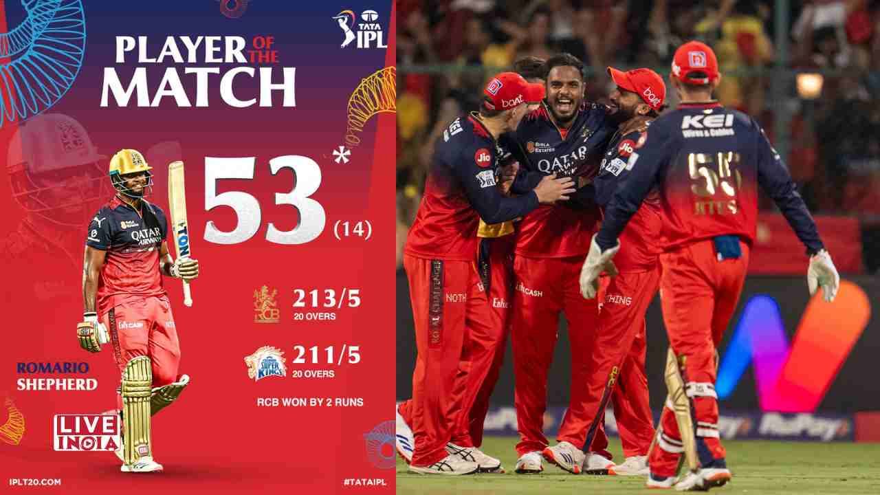 Earlier, CSK won the toss and chose to bowl. RCB’s openers Virat Kohli (62 off 33) and Jacob Bethell (55 off 33) tore into the CSK attack, adding 97 runs for the opening wicket. Their blitzkrieg laid the foundation for a late assault from Romario Shepherd, who hammered a jaw-dropping 53* off just 14 balls to push RCB to 213/5.