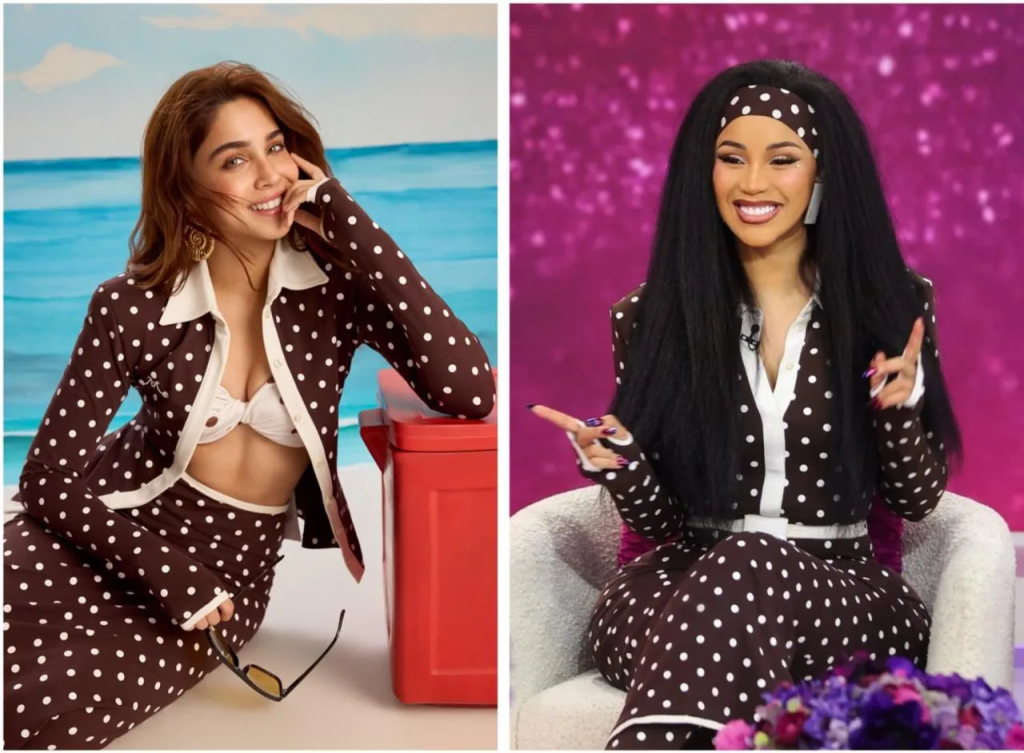 Interestingly, the same Rowen Rose ensemble was recently spotted on global music star Cardi B in New York City. While Cardi B opted for a bold, high-drama interpretation with a headscarf and structured styling, Sharvari’s version leaned toward a softer, more romantic aesthetic.