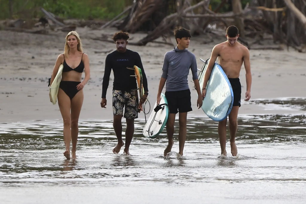 Ivanka Trump, Jared Kushner, Ivanka surfing, Ivanka Costa Rica, Trump family vacation, Karlie Kloss, Ivanka Kloss feud, Ivanka Trump bikini, Trump beach photos, Trump kids, celebrity beach vacations, celebrity fitness, Costa Rica vacation, surf session Ivanka