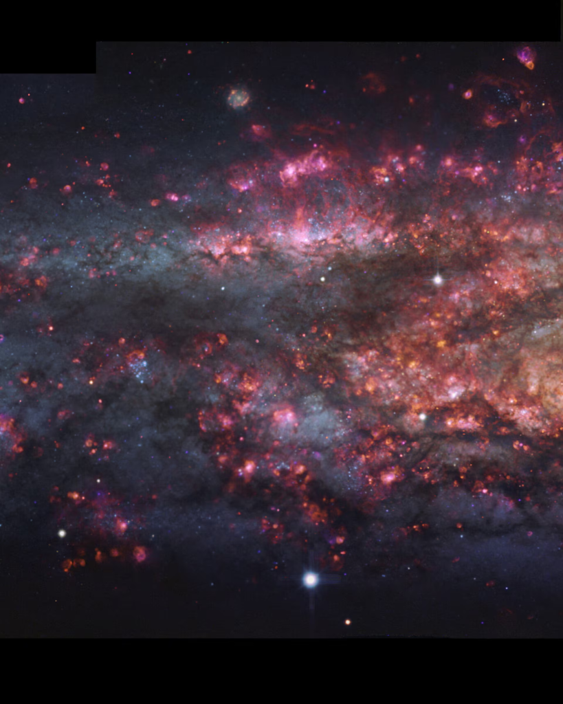 June 21, 2025: Astronomers have released an unprecedentedly detailed image of the Sculptor Galaxy (NGC 253), showcasing the galaxy in thousands of colors and revealing intricate details of its structure and stellar composition. Captured by the European Southern Observatory’s Very Large Telescope (VLT) using the MUSE instrument, this image provides a unique opportunity to zoom in on individual star-forming regions while simultaneously observing the galaxy’s overall structure.