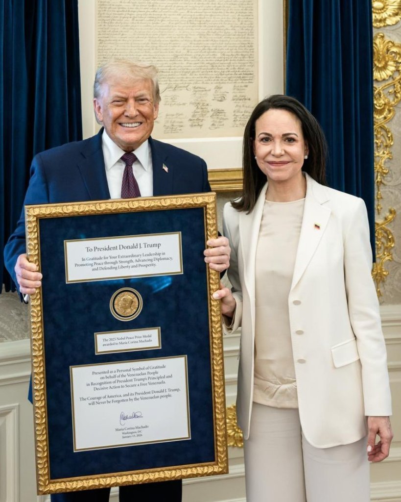 Machado, who was awarded the Nobel Peace Prize in October 2025 for her “tireless work promoting democratic rights,” traveled to Washington to meet Trump personally. During their discussion in the Oval Office, she handed over the physical medallion as a “personal symbol of gratitude” for the U.S. intervention.